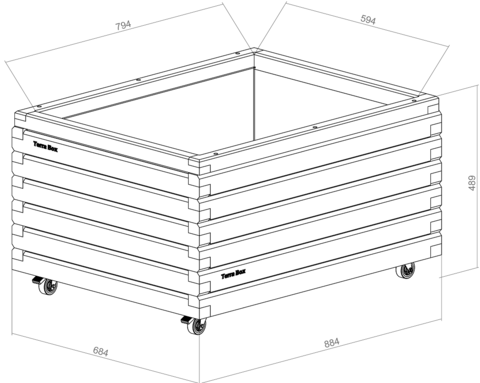 | Основание: | фанера 15 мм, укрепленная поперечными брусками. Дно короба пропитано грунтовкой. На дне проложен пластиковый лоток. Не протекает от обильного полива, вода в лотке не застаивается. |